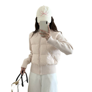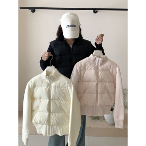 韩系针织拼接羽绒服女2025秋冬新款小个子短款90白鸭绒马甲薄外套