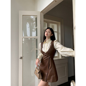 法式复古英伦风两件套2025秋季新款时尚百搭衬衫上衣背心裙连衣裙