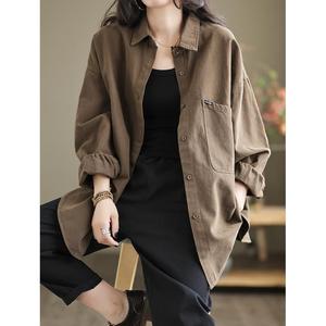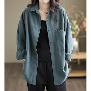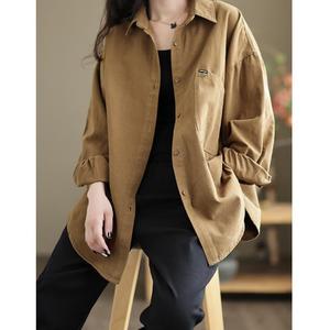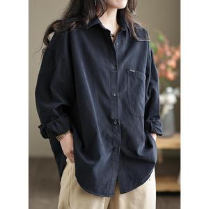 日系原单文艺复古2025春季新款落肩袖外套女宽松显瘦翻领黑色衬衫
