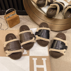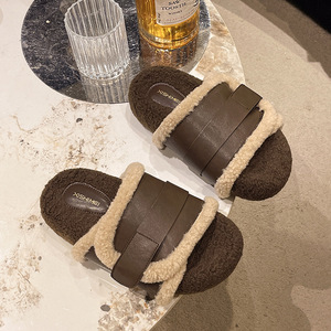 小众设计厚底高级感外穿复古皮带扣秋冬毛毛鞋2025年新款时尚拖鞋