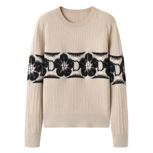 现货 2025秋季新款女休闲时尚百搭宽松复古提花圆领针织衫2J3E441