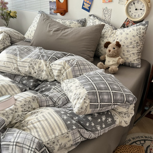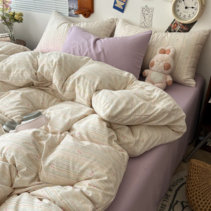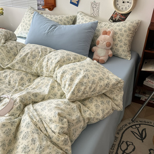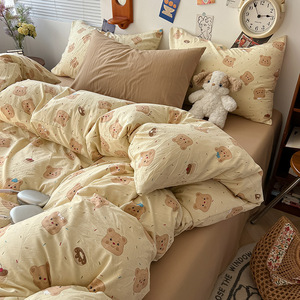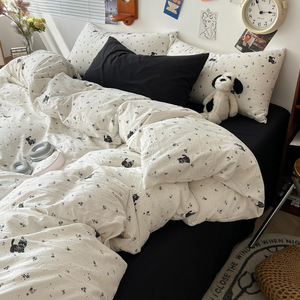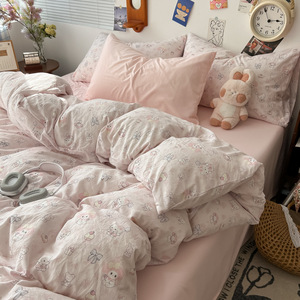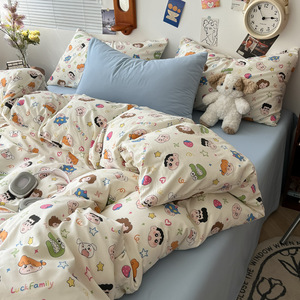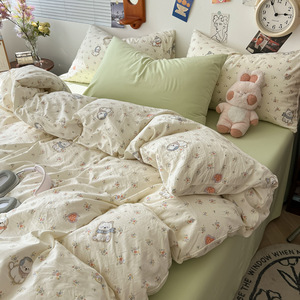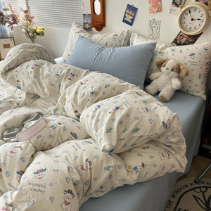 A类母婴级纯棉床上四件套ins卡通全棉床单被套床笠学生宿舍三件套