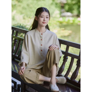 禅服棉麻盘扣居士服秋季中国风佛系禅意素衣女新中式太极表演服