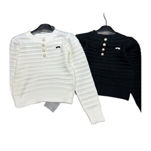 25年秋季新款香家logo凹凸扣子针织长袖圆领套头宽松百搭女毛衣