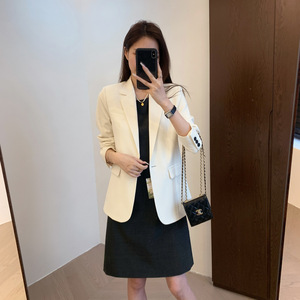 客供订单立体裁剪精湛工艺羊毛混纺修身显瘦一粒扣纯色西装外套女