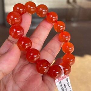 天然保山南红手串批发 冰红透润柿子红南红单圈13mm男款手链手饰