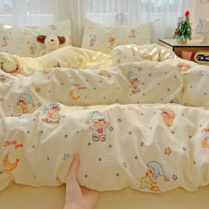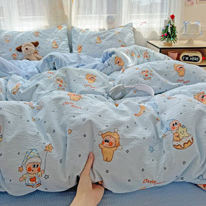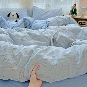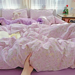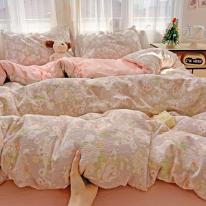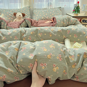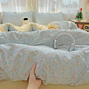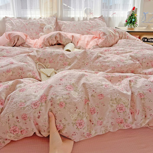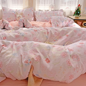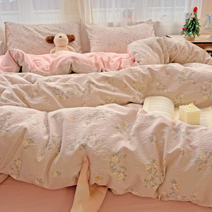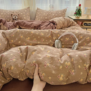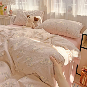 木棉小花印花床上四件套秋冬单被罩磨毛南通家纺用品4三件套南通