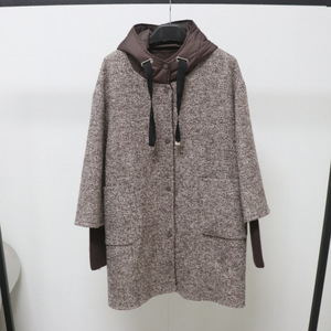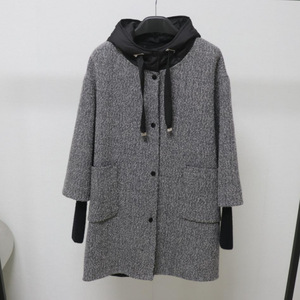 欧洲站双面羊毛大衣女连帽中长款显瘦秋冬宽松羊毛呢外套