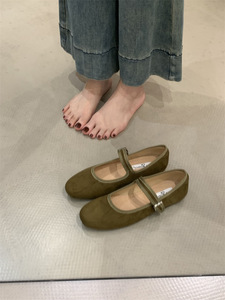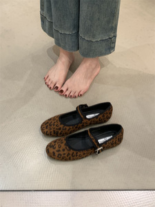 韩系豹纹一字带芭蕾鞋2025新款小众绒面圆头百搭单鞋女鞋