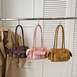 复古小众多口袋磨砂单肩包包女2025秋季大容量百搭上班腋下机车包