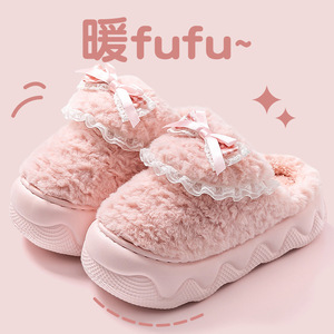 蝴蝶结棉拖鞋女士冬季2025新款室内家居棉拖秋冬款厚底保暖月子鞋
