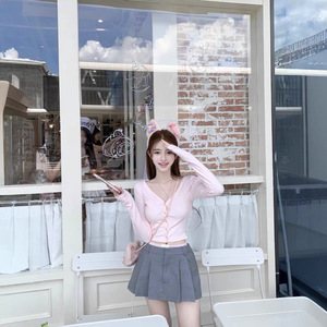 若语 8/25 M20:00新品9.5折少女系 v领坑条显瘦针织上衣