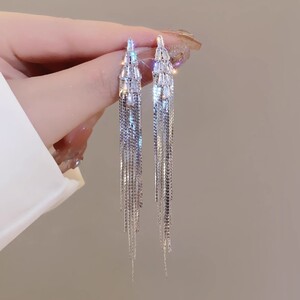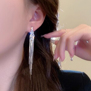 锆石长款流苏耳钉女新爆款轻奢精致高级设计感时尚百搭耳环耳饰品