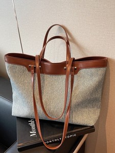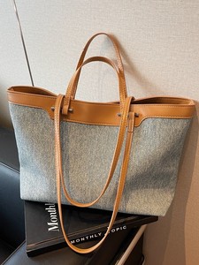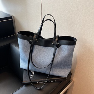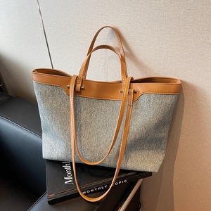 跨境牛仔布手提大包包女2025新款简约通勤托特包大容量百搭单肩包
