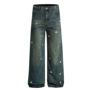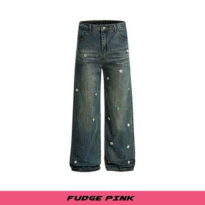 Fudge Pink 2025秋季New甜美少女趣味装饰宽松水洗牛仔长裤