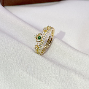 超闪微镶锆石在逃公主皇冠开口戒指女个性轻奢甜美百搭食指戒指环