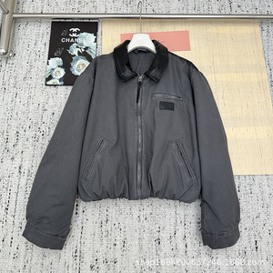 正确版本小众潮牌25新款巴恩风皮领夹棉拉链夹克外套男女同款棉衣