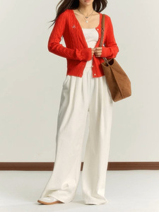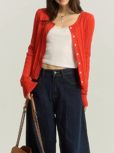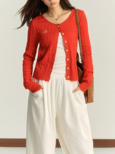 iNSLiSA秋季枣红色毛衣穿搭麻花针织开衫女韩系复古短款上衣外套