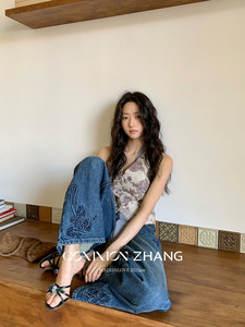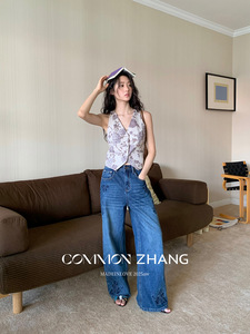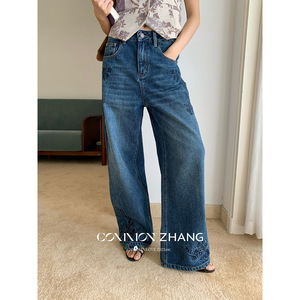 CZ ZHANG秋重工压花磨白低腰阔腿牛仔裤女直筒休闲老爹裤B31335