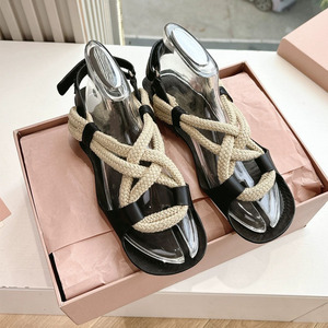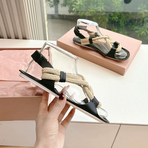 羊皮版新款凉鞋度假复古沙滩凉拖简约时尚百搭外穿麻绳平底拖鞋女