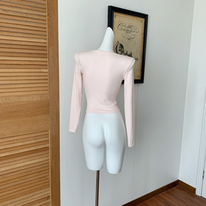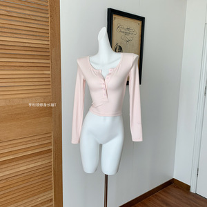 亨利领T恤女秋小个子粉色内搭修身长袖针织打底衫
