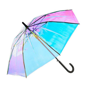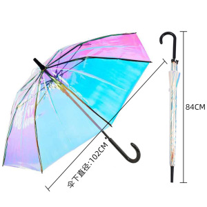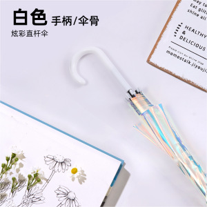 厂家批发创意森系晴雨伞镭射加固透明炫彩直杆伞个性拍照打卡道具