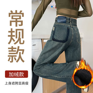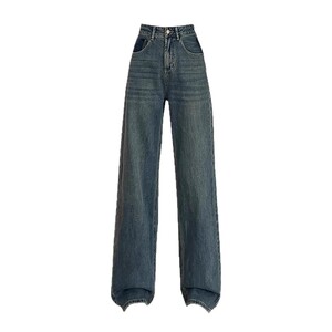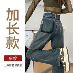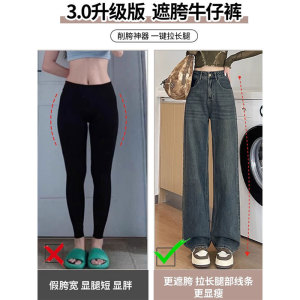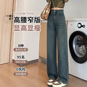 复古窄版直筒牛仔裤女秋季2025新款加长高腰遮胯显瘦水泥灰阔腿裤