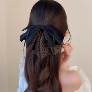 复古风黑色飘带豹纹缎面蝴蝶结马尾夹轻奢时尚气质后脑勺盘发抓夹