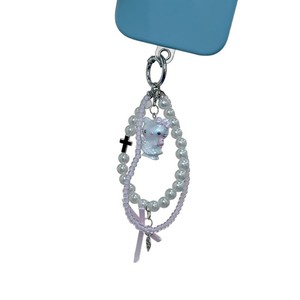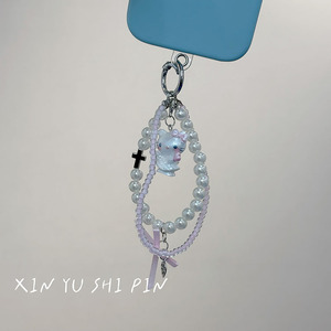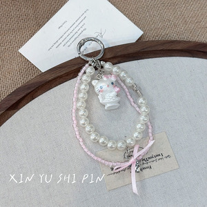 可爱甜美粉色kt猫珍珠手机链挂绳ccd相机挂件少女心钥匙扣包挂饰