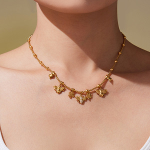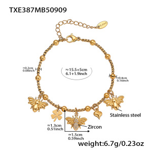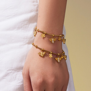 摩天轮5A锆石小蜜蜂DIY多配件吊坠项链手链套装不锈钢18k镀金首饰