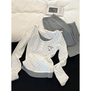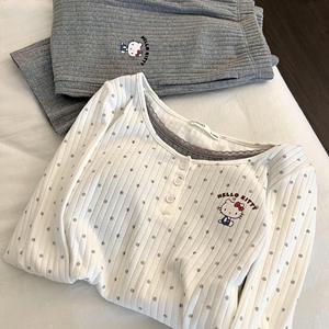 韩版设计感波点HelloKitty长袖睡衣女春秋新款大码舒适家居服套装