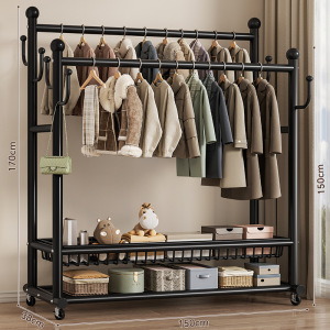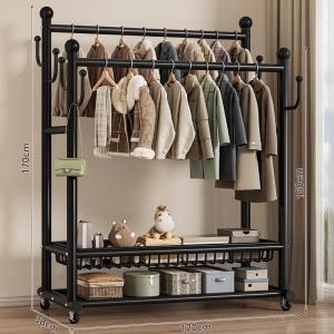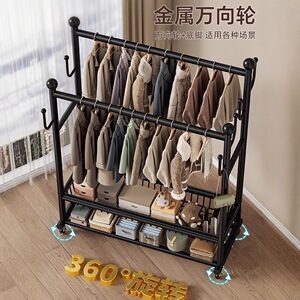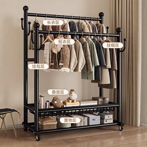 挂衣架落地卧室家用房间室内双杆晾晒衣服架子可移动多功能衣帽架