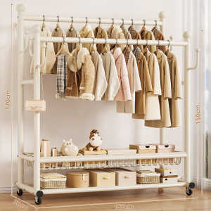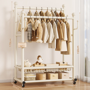 【巨粗32管】奶油白150cm-双杆大容量(网篮收纳+鞋架)送金属轮+底脚