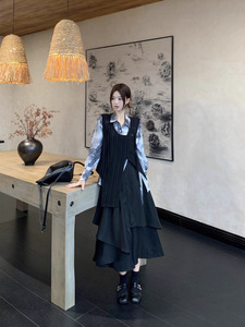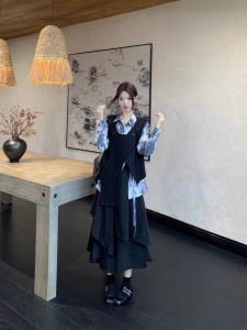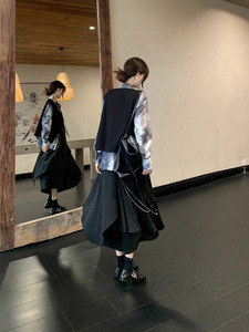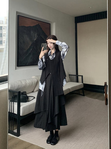 酷飒一整套穿搭2025年秋新款不规则马甲印花衬衣半身裙裤三件套