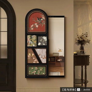 中古风全身镜可推拉暗藏式穿衣镜卧室隐形试衣镜玄关画壁挂式镜子