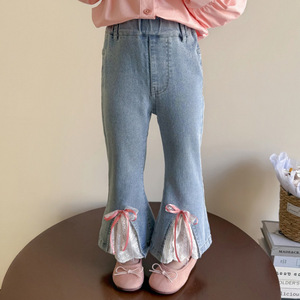 女童秋季洋气蝴蝶结牛仔裤2025新款儿童时尚女宝宝百搭花边喇叭裤