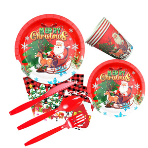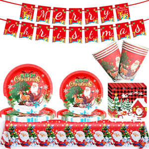 跨境热卖圣诞节主题一次性纸杯纸盘套装节日派对装饰用品厂家批发