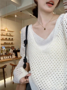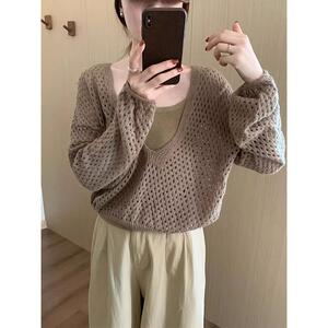 巨好看的镂空针织罩衫叠穿内搭背心两件套女早秋韩系气质显瘦上衣