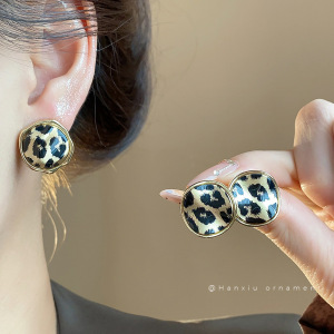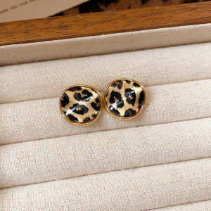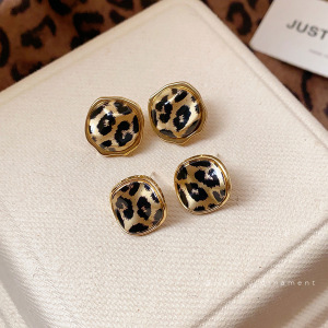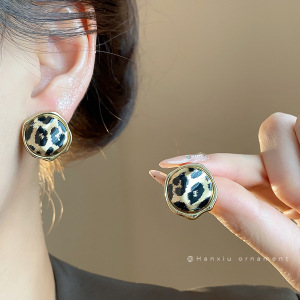 真金电镀银针褶皱豹纹耳钉秋冬氛围感美拉德耳环简约时尚气质耳饰