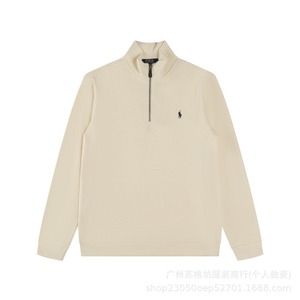【高品质】可扫码~RL拉夫刺绣小马标半拉链高领长袖针织卫衣男女