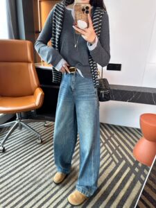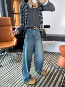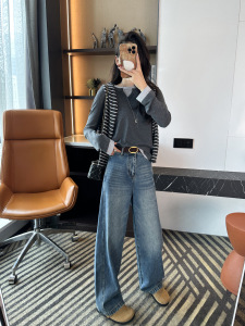 视觉显瘦术!云柔棉窄版弯刀牛仔裤女2025新秋季宽松阔腿拖地裤秋