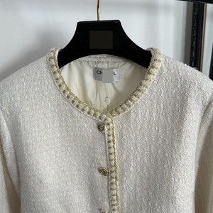 2025秋冬南油高端女新款高端名媛亮丝编织包边圆领长袖粗花呢外套
