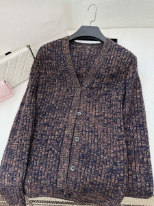 2025早秋新款南油pra复古文艺气质简约宽松减龄百搭v领针织开衫女