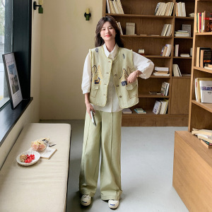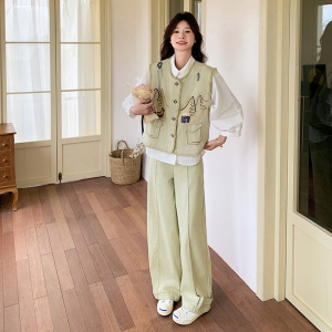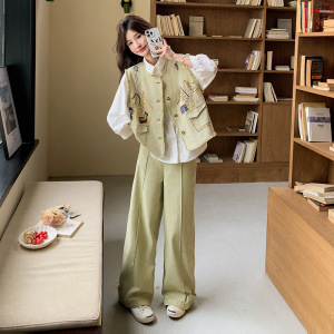 实拍牛仔刺绣马甲时尚套装女2025春秋新款穿搭一整套阔腿裤三件套