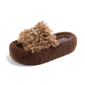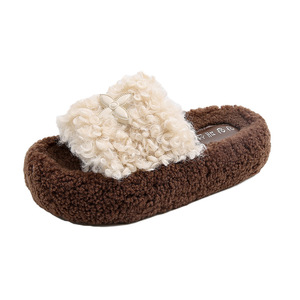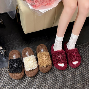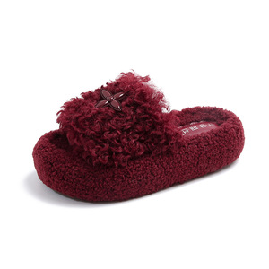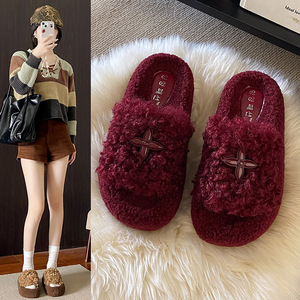 2025秋冬季新款厚底毛毛拖鞋居家外穿红色厚底棉拖女鞋