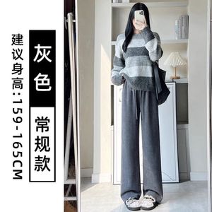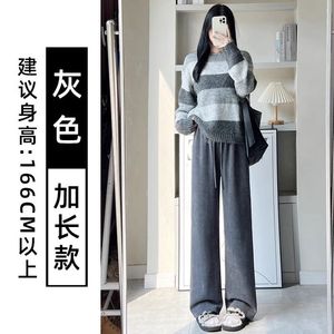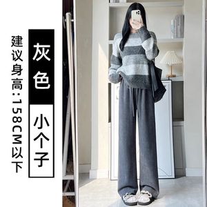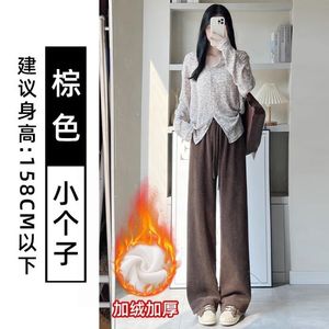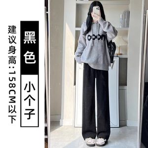 雪尼尔运动卫裤女秋冬加绒窄版休闲阔腿裤小个子高腰垂感直筒长裤