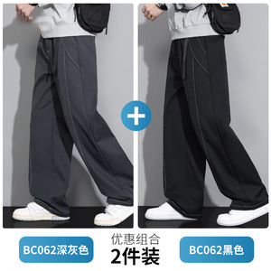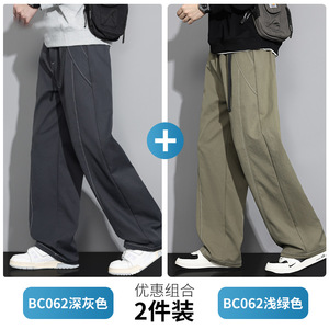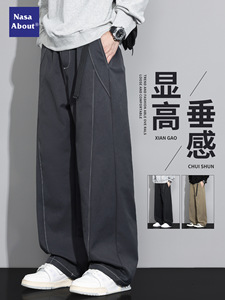 NASA休闲裤男士春秋款宽松直筒秋季大码加肥加大胖子垂感阔腿裤子