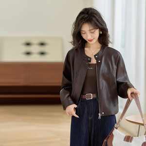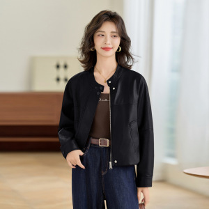 休闲绵羊皮皮衣女2025春秋冬新款时尚高端女士皮夹克短款外套
