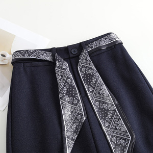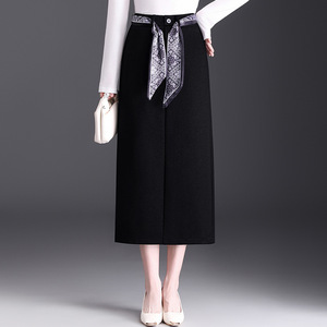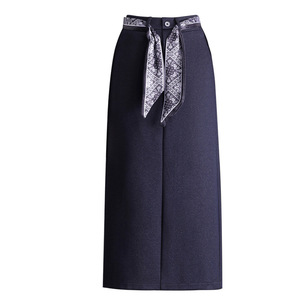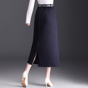藏蓝色直筒牛仔半身裙女秋季新款设计感包臀长款裙子气质开叉女裙