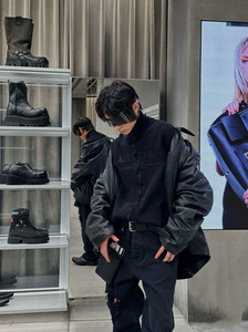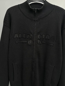 巴黎B家新款字母贴布羊毛拉链针织开衫世家高定版慵懒风宽松夹克